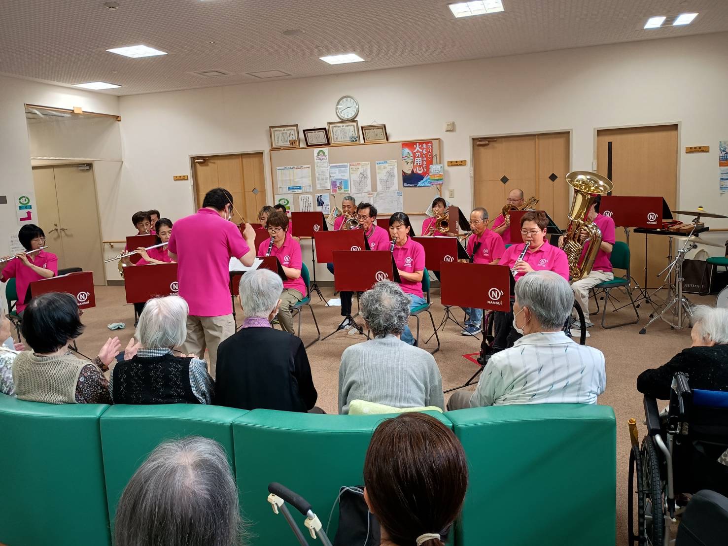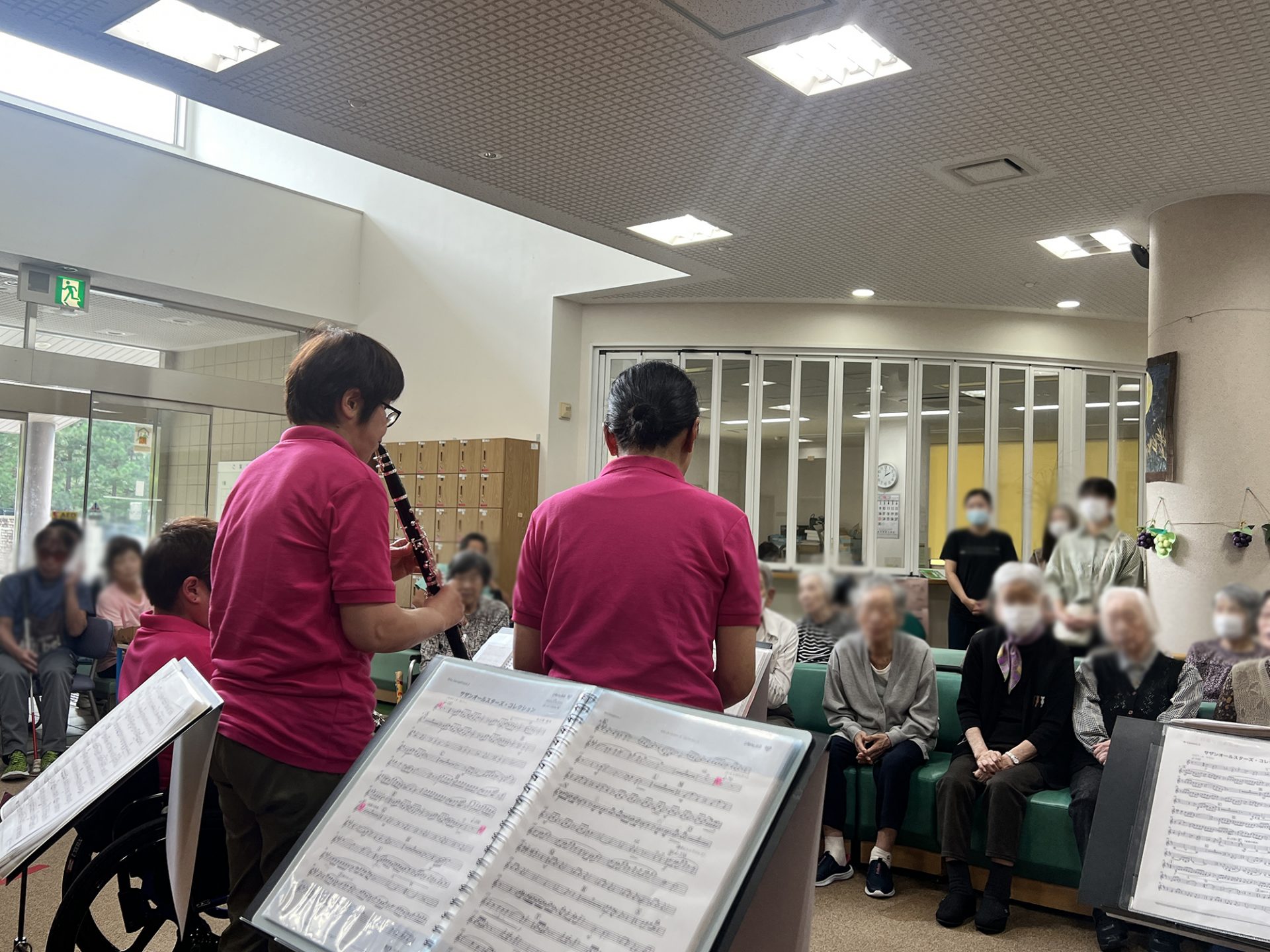 敬老の日に近い祝日の演奏会でしたので、たくさんの利用者さんはもちろん、